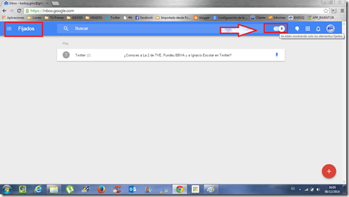 Como veis en la imagen, podemos cambiar la vista, para que nos muestre todos los correos en Recibidos o los que hayamos marcado como “fijo”.